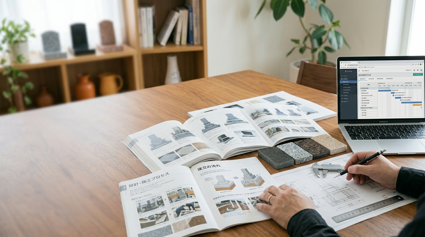 まずはホームページのお問い合わせフォーム、またはお電話からお気軽にご相談ください。ご家族それぞれの想いやご予算、墓地の条件(広さや宗派など)をじっくりと伺います。